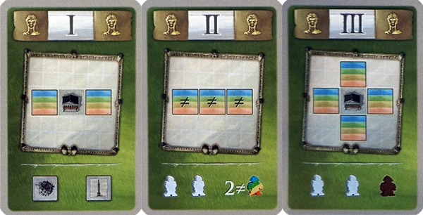 Forum Trajanum: Essen Promo Cards is a promo pack that contains three “Trajan” cards. Forum Trajanum comes with twelve Trajan cards, so this pack provides three extra Trajan cards for more variety and replayability in the game!