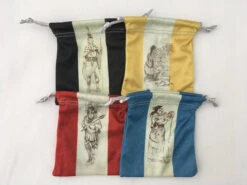 A set of four drawstring bags for storing and drawing the city tiles from Concordia, which helps in keeping the A, B, C, and D city tiles separate and convenient to draw onto the board. These are sublimation printed microfiber bags, with the bags measuring 16 cm deep by 13 cm wide.