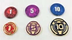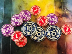 As you race to build your space station, impress your galactic neighbors with these stunning metal tokens for the board game Among the Stars!