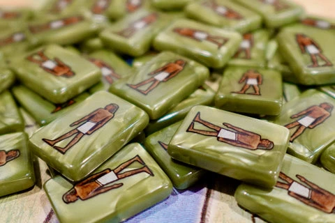 This set contains the 45 farmers to replace the original ones made from cardboard in the game, made with a pearlescent finish.