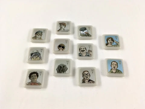 This set contains replacements for 11 of the timer tokens, including the two blue ones used for easy mode, Paris, Madrid and Cape Town. All tokens have the character art on one side, and the checkmark artwork on the reverse side.