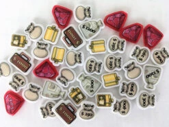 Reach for the sky! You may be tempted to hold up a train for a set of these premium GeekUp bits for Colt Express! Upgrade your loot with custom purses, strongboxes, and gems from the base game, the whiskey flasks from the “Horses and Stage Coach” expansion, and the mailbags from the “Marshall & Prisoners” expansion.