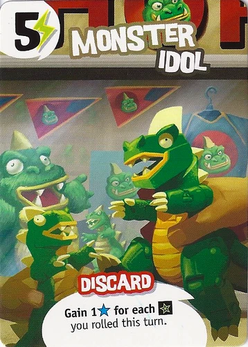 The Monster Idol is a DISCARD card for King of New York that costs 5 energy. When you buy it, you gain 1 VP for each fame you rolled that turn.