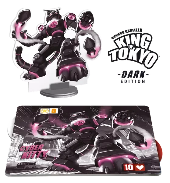 The Dark Cyber Kitty is a promotional monster that can be used to play King of Tokyo, King of Tokyo – Dark Edition, and King of New York.