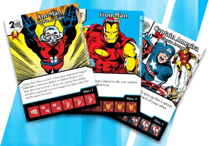 With a distinctive retro art style, this set features 3 Dice Masters cards of original Avengers – Ant-Man, Captain America, and Iron Man! Corresponding dice separate.