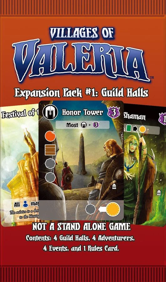 Guild Halls introduces 4 new buildings – 1 for each type. When built, a Guild Hall will reward the player with Victory Points if they have the most of that Guild Hall’s building type.